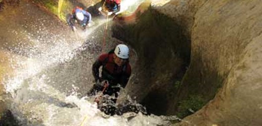 Le Canyoning permet grâce à des techniques de corde, de s’engager dans des torrents à fort dénivelé. permettant d’appréhender le torrent à travers des sauts, glissades et descentes en rappel.