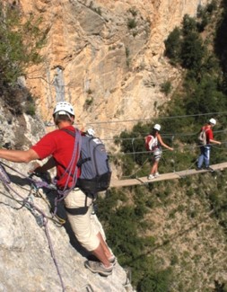 Équipés d’un baudrier et de sa longe, vous progressez sur un parcours aérien en étant relié en permanence à un filin d’acier assurant votre sécurité. Lors de la Via Ferrata, vous retrouvez des agrès ludiques tels des ponts de singe, ponts himalayens, tyroliennes, perchés à 200 mètres au-dessus de vide ! Du haut du parcours, vous avez une vue imprenable sur la vallée et les sommets qui vous entourent. Des échappatoires seront possibles pour certains passages qui vous sembleront infranchissables.