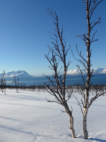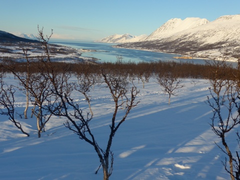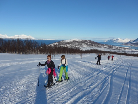 Dîner tôt avant une sortie nocturne guidée en raquettes à la recherche du meilleur endroit d´où nous pourrions admirer les Aurores Boréales.