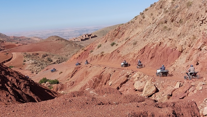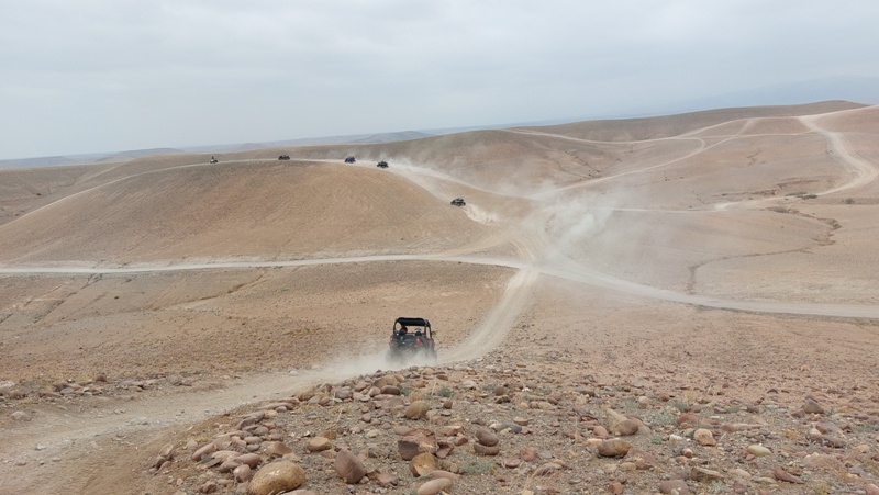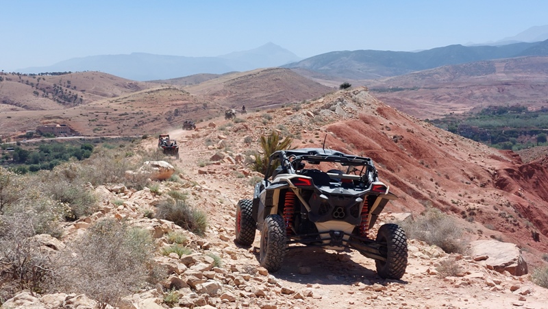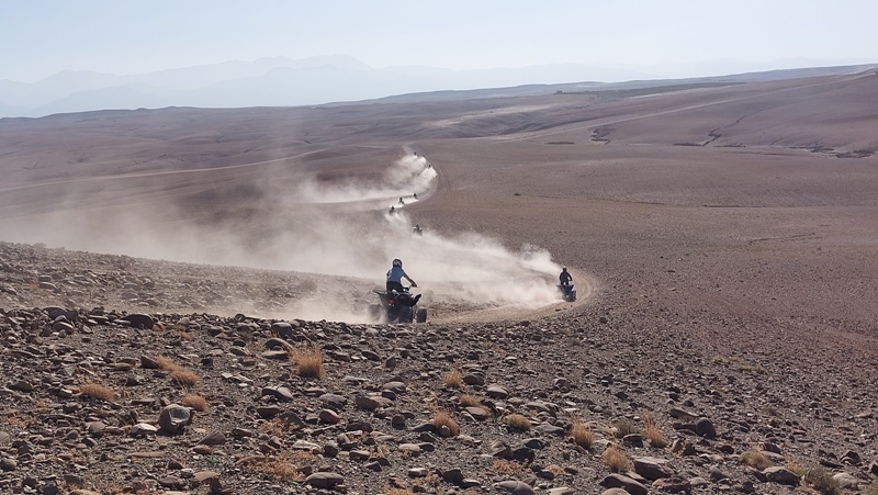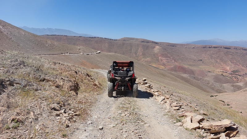 Transfert à la base des quads/buggys (25mn), présentation du guide et briefing sur la sécurité et la conduite sur le parcours, puis départ en direction de l’Atlas, permettant à chacun de se familiariser avec sa machine.