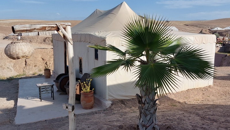 Déjeuner dans une auberge, avant d’attaquer les pistes rocailleuses, et prendre de l’altitude puis arriver à votre campement luxe au cœur du désert d'Agafay.